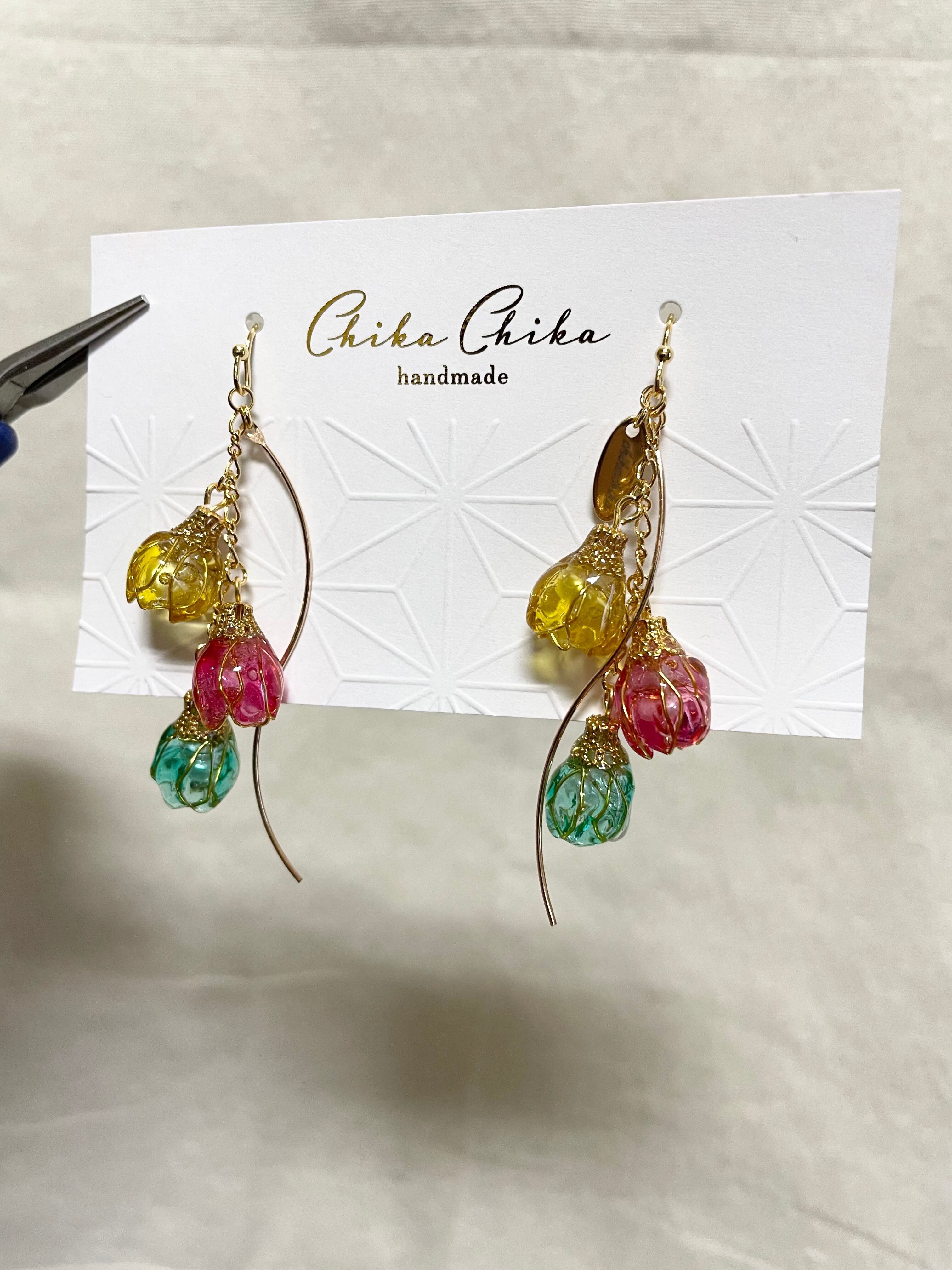光をあつめて、ころんと可愛く揺れる三色の蕾ピアス。
