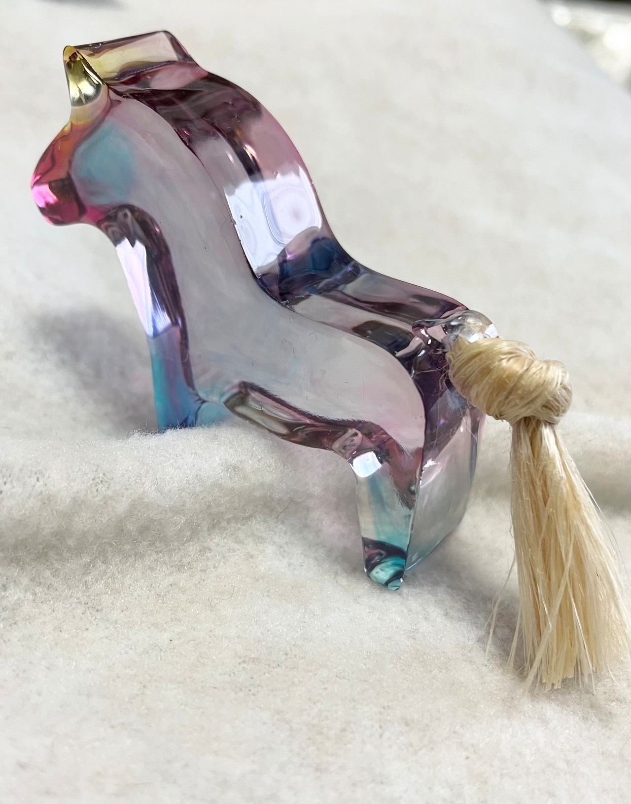 《開運レジン馬 — 麻の尾を持つ幸運の馬》